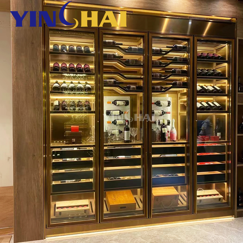 Modern Stainless Steel Wine Cabinet Luxury Temperature Controlled Wine Glass Display Cabinet